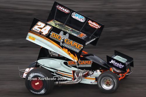 (Bill W) July 14, 2009 – A busy weekend of racing saw three podium finishes in four tries for Terry McCarl and the Big Game Treestands #24 team. A third place run with the Outlaws and two charges from the back of the pack on Knoxville’s Twin Features night were the highlights. This weekend, the Altoona, Iowa driver aims for one of sprint car racing’s biggest prizes, the $50,000 King’s Royal at the Eldora Speedway.