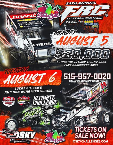 “We’re very excited to have both Kyle Larson and Tony Stewart back at the Osky Challenges this year,” said promoter Terry McCarl. “Larson is still the only driver to have won a belt both with and without the wing and Stewart will be there both nights going for his first ever championship belt. Former Front Row Challenge winners Daryn Pittman, Brad Sweet, and Shane Stewart are all confirmed to be there Monday night, as well as both of the Scelzi boys [Gio and Dominic]. Tuesday night we’ll have both Carson Macedo & Kevin Thomas Jr. back to defend their Ultimate Challenge titles.”
